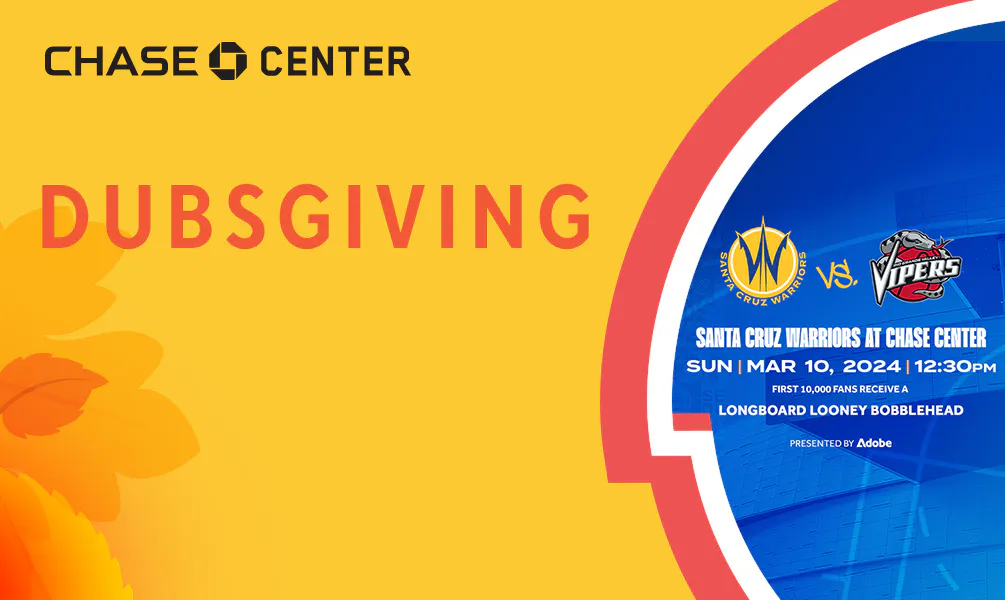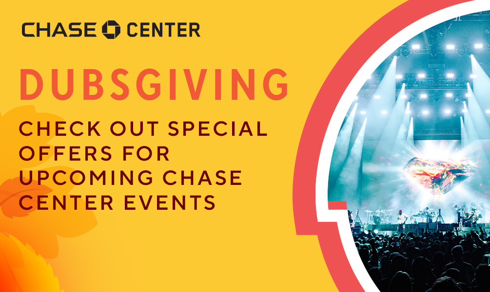 From this Friday, Nov. 24, take advantage of can't-miss deals on select Chase Center events! For information on the Warriors' Dubsgiving offers on tickets, merchandise and Warriors Basketball Academy sessions, view here.