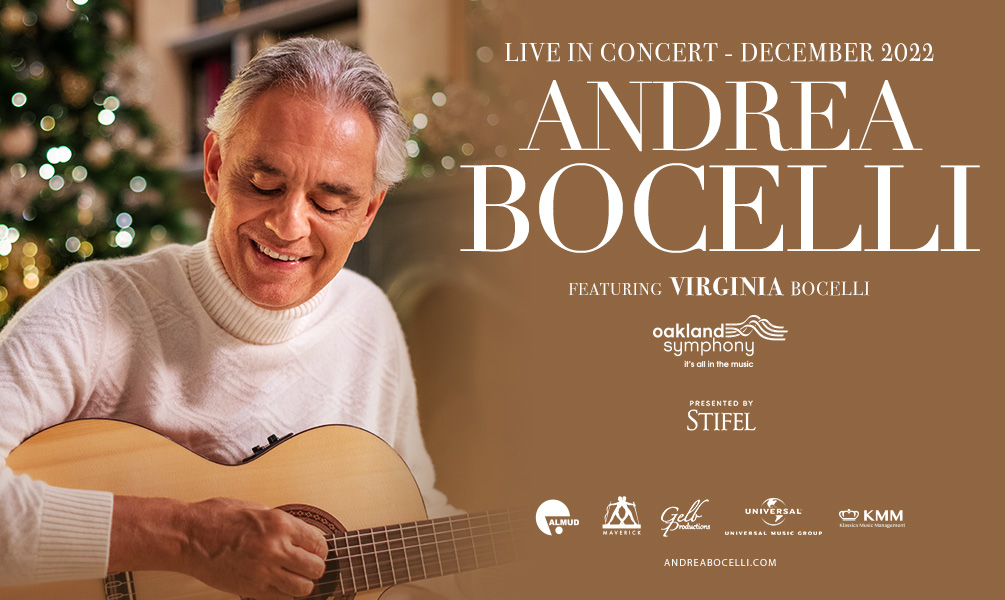 Andrea Bocelli In Concert will feature performances from Bocelli’s uplifting album Believe, a poignant and personal collection of songs, celebrating the power of music to soothe the soul, as well as a selection of arias, his beloved crossover hits, famed love songs, and music in honor of the Holiday Season at Chase Center on Dec. 1, 2022.