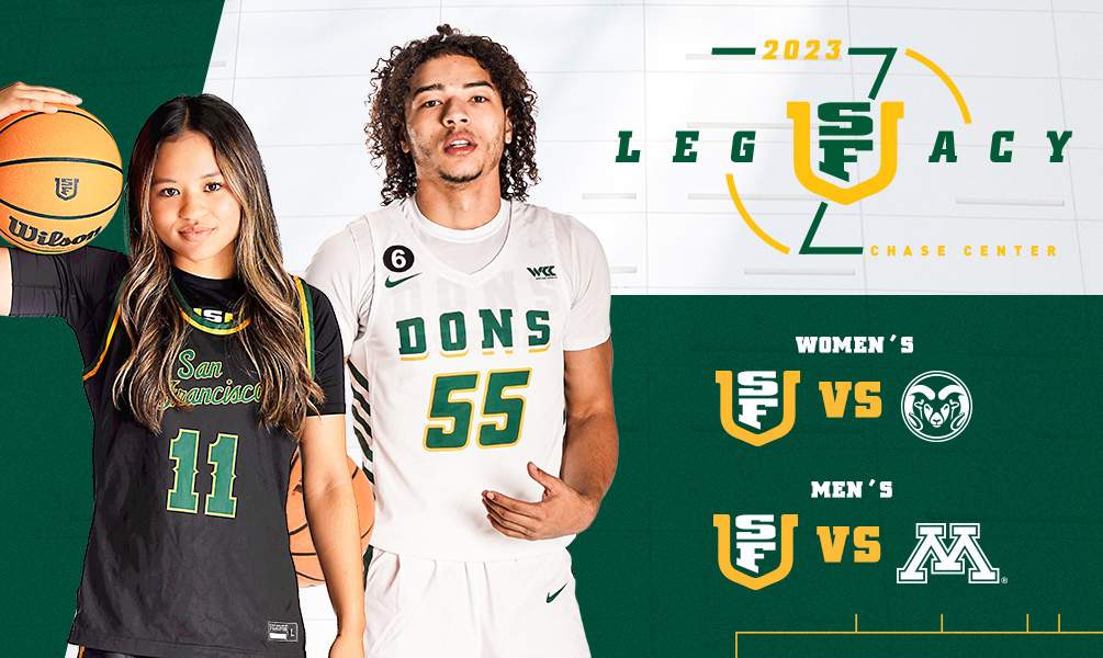 The Golden State Warriors and Chase Center announced today that the venue will host a college basketball double-header, USF Legacy, featuring the University of San Francisco (USF) men’s and women’s teams on Sunday, November 26. The women will tip off against Colorado State at 2:30 p.m., followed by the men taking on Minnesota at 5:30 p.m. The event marks the fourth time both USF teams will play at Chase Center following their 2019 appearance against Princeton men’s basketball and Stanford women’s basketball, their 2021 matchups against Davidson men’s basketball and Cal women’s basketball, and last year’s games against San Diego State’s women’s basketball and Utah State’s men’s basketball.