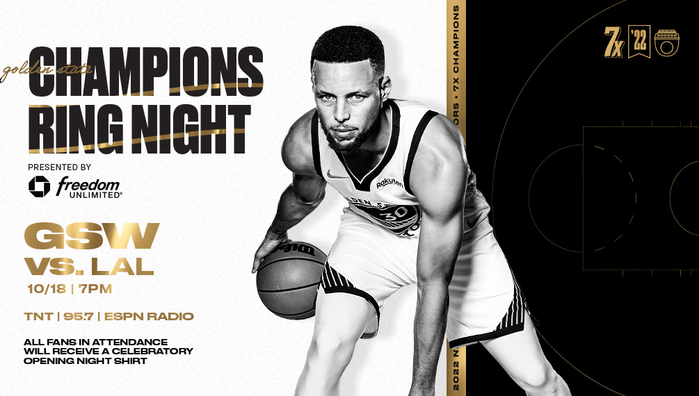And speaking of Championships, the Warriors will celebrate their 2022 title with a special pregame ceremony during which the Warriors will receive their 2022 NBA Championship rings and unveil their Championship banner – their first in the young Chase Center era. All fans attending the game are encouraged to ARRIVE EARLY and be in their seats by 6:30 p.m. NBA Commissioner Adam Silver, along with Warriors co-executive chairmen Joe Lacob and Peter Guber, will be presenting last season’s players with diamond-clad rings crafted by Jason of Beverly Hills. Among the players who will receive his Championship ring on Tuesday … former Warrior and current Laker, as well as Oakland native, Juan Toscano-Anderson.